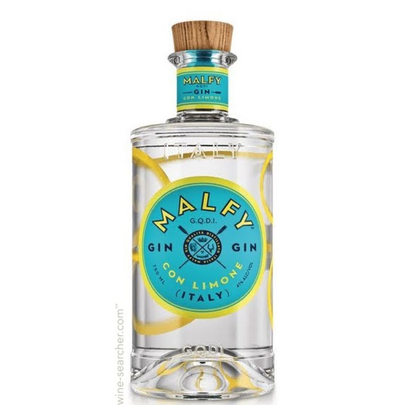 “Malfy Limone” è un gin completamente italiano, dalla distillazione agli ingredienti, dalla bottiglia all’etichetta. In quest’ultima è rappresentato uno stemma che ricorda le gare di canottaggio che coinvolgevano i quattro antichi regni d’Italia, mentre i colori azzurro e giallo richiamano il mare e i limoni che provengono da Amalfi e dalla sicilia. La sigla G.Q.D.I. sta per “Gin di Qualità Distillato in Italia”.