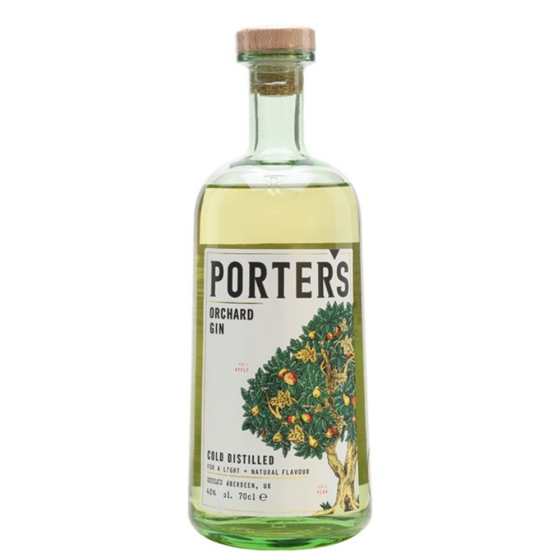 “Porter’s Orchard” gin è realizzato con mele verdi e pere distillate a freddo, combinate con il suo classico spirito infuso di ginepro per creare la base di questo gin fruttato e ricco di noci. Viene quindi miscelato con una piccola quantità di distillato di soia, conferendo al palato note ricche e nocciolate, accanto a biscotti al burro, mele dolci e pere floreali.
