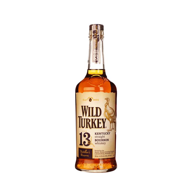 “Wild Turkey 13 anni” è una rarità di Wild Turkey, inizialmente destinata alla sola esportazione, questa versione sofisticata, etichettata “Distiller’s Reserve”, viene imbottigliata dopo un invecchiamento di 13 anni in insolite botti nuove di rovere. Il liquido non mente circa la sua autentica natura di bourbon, con note interessanti di miele, vaniglia e cannella.